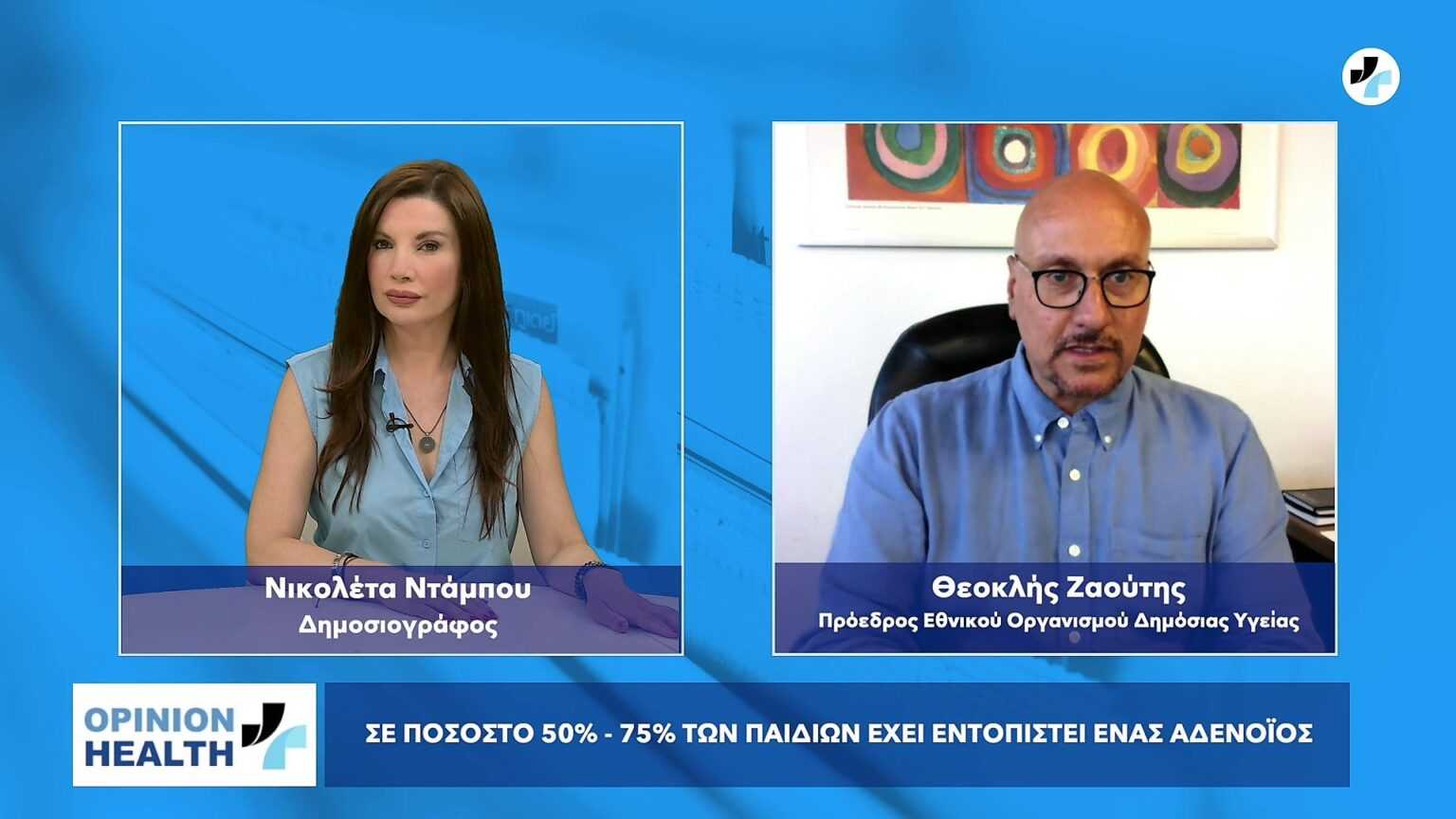 Ο Πρόεδρος του ΕΟΔΥ κ.Θεοκλής Ζαούτης παραχώρησε συνέντευξη στην Νικολέτα Ντάμπου και στην εκπομπή Opinion Health του healthweb.gr, ο οποίος μεταξύ άλλων τόνισε ότι αυτήν την στιγμή είναι μικρός ο απόλυτος αριθμός εισαγωγών στα νοσοκομεία αλλά και ότι ‘’ Δεν βρισκόμαστε μπροστά σε ένα νέο κύμα πανδημίας του κορωνοϊού διότι ‘’ Η εξέλιξη της πανδημίας θα είναι μικρά κυματάκια, δεν θα έχουμε τις εικόνες που είχαμε στο παρελθόν’’, είπε.
