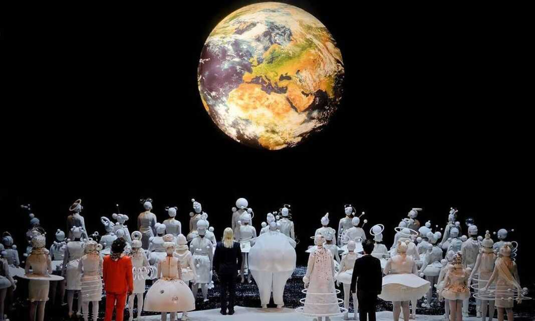 Στη νέα διασκευή του έργου οι πολύπλοκες σκηνικές απαιτήσεις που προβλέπει το λιμπρέτο δίνουν τη θέση τους στη φαντασία, ενώ το λιμπρέτο, η μουσική και η σκηνοθεσία δημιουργούν έναν ονειρικό κόσμο για τους νεαρούς ερμηνευτές των Παιδικών και Νεανικών Χορωδιών της ΕΛΣ και της Οπερά Κομίκ. Σε μια τεράστια παιδική χαρά συναντιούνται οι κάτοικοι της Γης και της Σελήνης, παιδιά ντυμένα με κοστούμια των «μεγάλων» που ερμηνεύουν βασιλείς, λαϊκούς ανθρώπους, αστρονόμους, πρίγκιπες και υπουργούς, αλλά και τα παιδιά που κάνουν διαδήλωση για το κλίμα και τη Γη που πνίγεται στις ανοιχτές χωματερές.