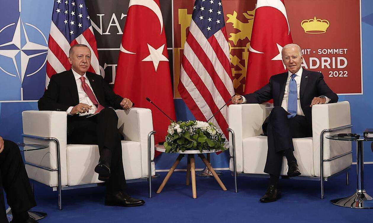 «Η συνάντηση των δυο τους την Τετάρτη στη Μαδρίτη έρχεται αφού ο Ερντογάν έριξε την αντίθεσή του στις προσφορές της Σουηδίας και της Φινλανδίας να ενταχθούν στο ΝΑΤΟ, φέρνοντας τη συμμαχία ένα βήμα πιο κοντά στην ενίσχυση του ανατολικού μετώπου της με τη Ρωσία. Η κίνηση αυτή φαίνεται ότι κέρδισε την υποστήριξη των ΗΠΑ για την ενίσχυση της πολεμικής αεροπορίας της Τουρκίας», αναφέρει το Bloomberg.