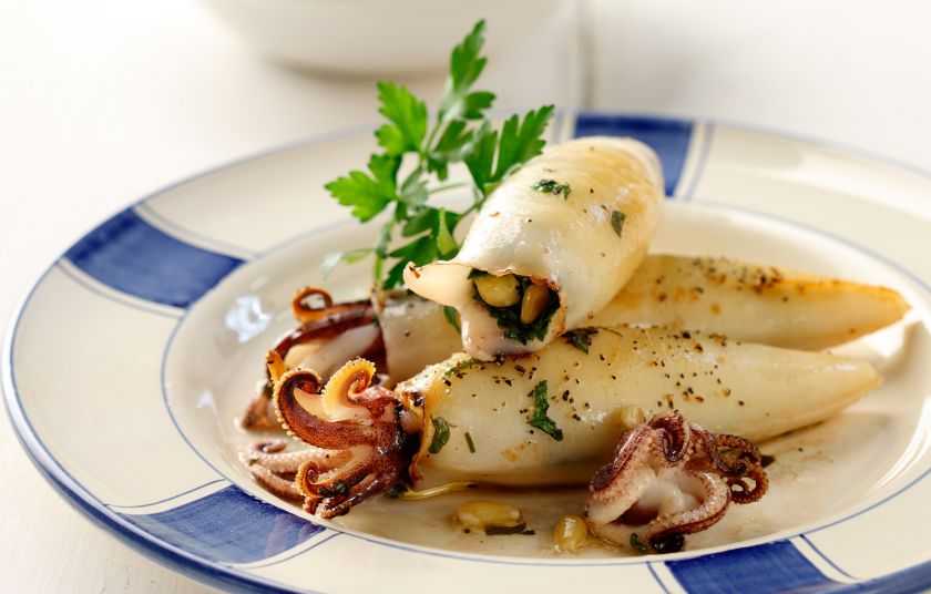 Ετοιμάζουμε μια διαφορετική γέμιση για τα καλαμαράκια με μαντζουράνα, μαϊντανό, κρεμμύδι, κουκουνάρια.