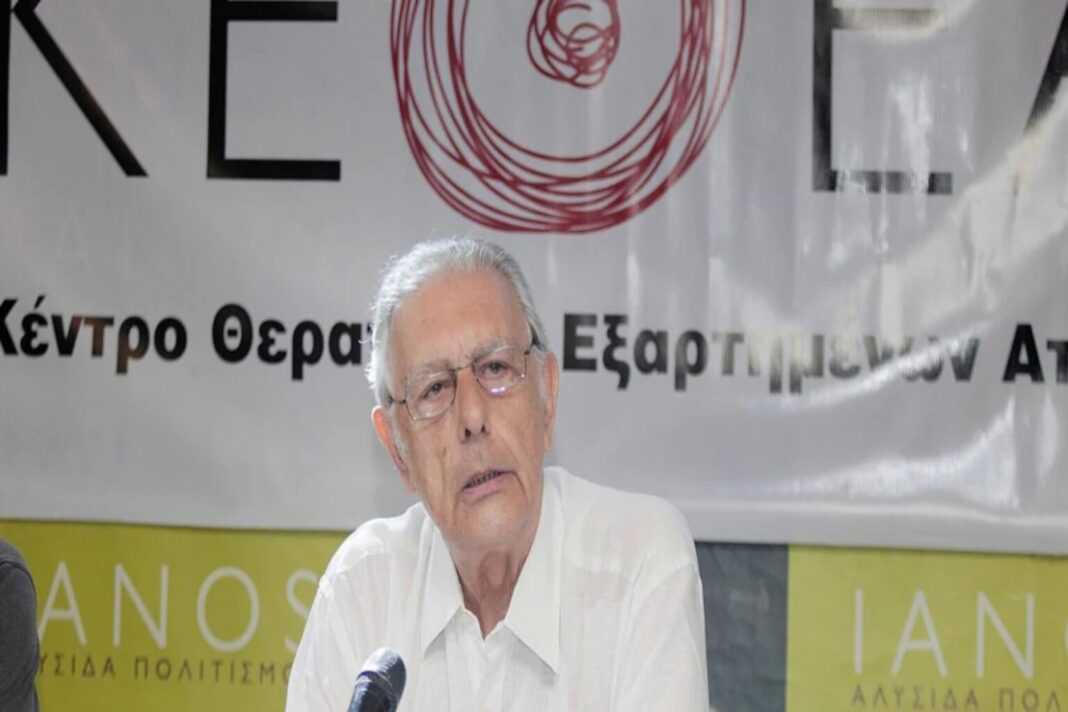 Το όνομά του είχε συνδεθεί με το εγχείρημα του οργανισμού ήδη από το 1990. Ο ίδιος είχε διατελέσει πρόεδρος για τρεις θητείες ενώ υπήρξε μέλος του ΔΣ για σχεδόν 14 χρόνια, ενώ υπήρξε εθελοντής στο ΚΕΘΕΑ για πάνω από 33 χρόνια. Μετά τις σπουδές του στο πανεπιστήμιο της Λοζάνης (μεταπτυχιακό στην πολιτική και την κοινωνιολογία), επιστρέφει στην Ελλάδα το 1965 και δουλεύει στο Εθνικό Κέντρο Κοινωνικών Ερευνών. Η δικτατορία του 1967 τον συλλαμβάνει και μένει στη φυλακή για 5,5 χρόνια. Στην πολυτάραχη ζωή του διετέλεσε μεταξύ άλλων και επικεφαλής του Ιστορικού Αρχείου της Εθνικής Τράπεζας της Ελλάδας. Υπήρξε ενεργό μέλος του Συνασπισμού από την ίδρυσή του και μέλος στις τρεις πρώτες ΚΕ του κόμματος, υπεύθυνος των εξωτερικών σχέσεων.