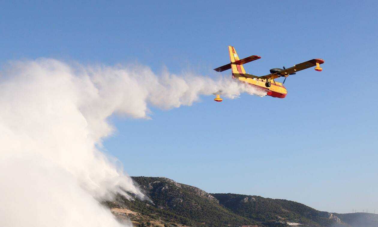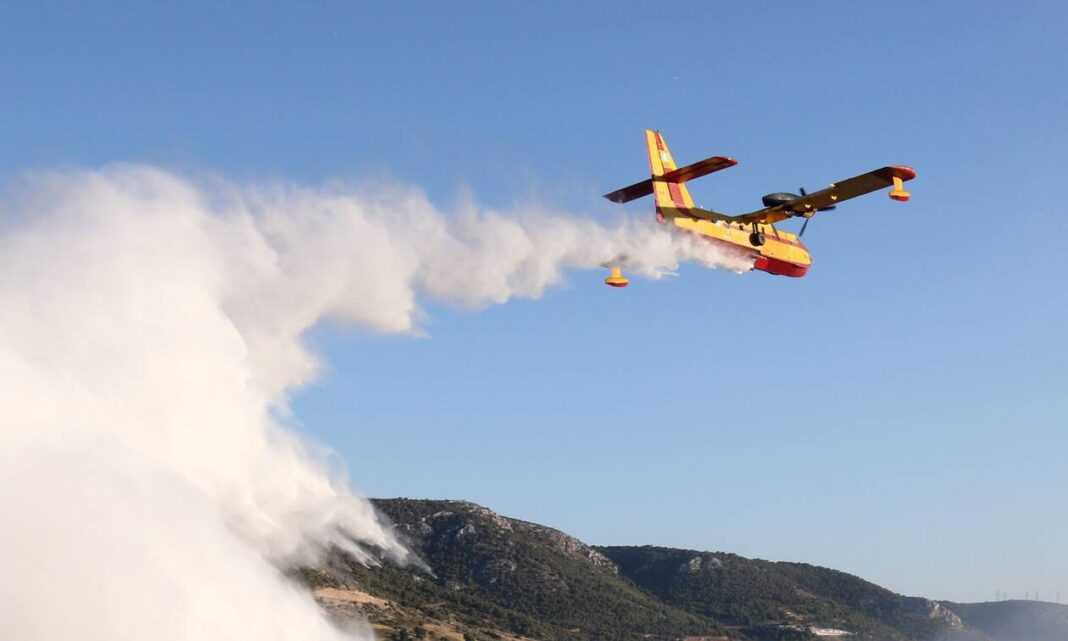 Αυτή τη στιγμή στο σημείο επιχειρούν 7 οχήματα και 14 πυροσβέστες και 4 αεροσκάφη.
