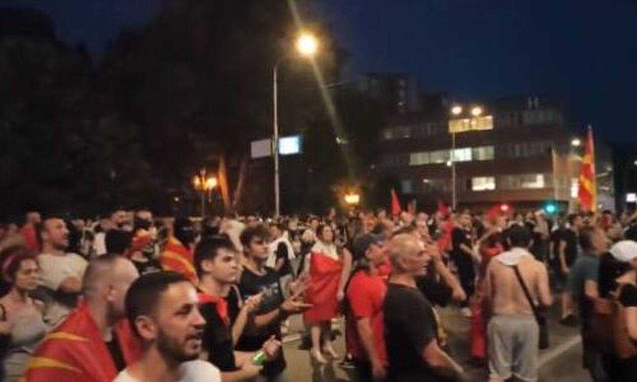 Σκόπια: Συνεχίστηκαν οι διαδηλώσεις κατά της συμφωνίας με τη Βουλγαρία με εθνικιστικά συνθήματα, σημαίες με τον ήλιο της Βεργίνας και αναφορές σε Μακεδονία.