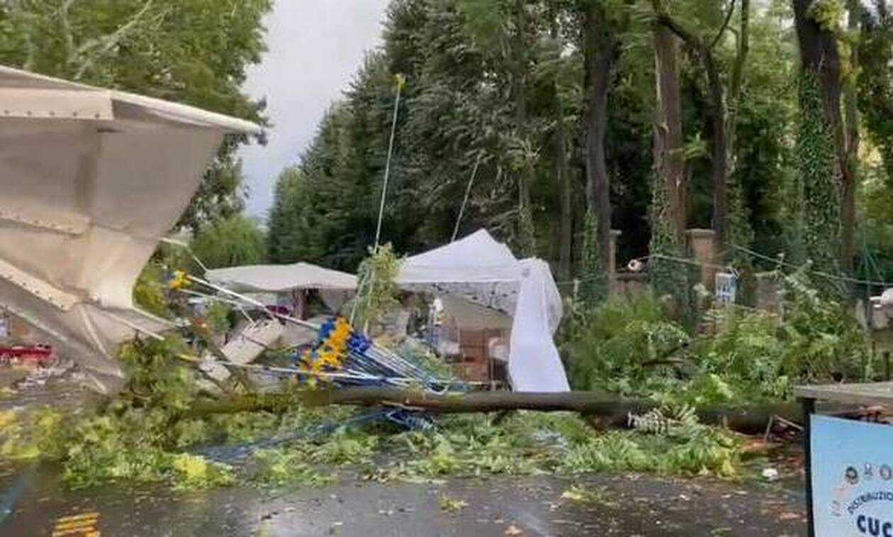 Ο ανεμοστρόβιλος «σήκωσε» δεκάδες υπαίθριους πάγκους που είχαν στηθεί για τοπική θρησκευτική γιορτή. Κόσμος, έντρομος, απομακρύνθηκε τρέχοντας από την περιοχή.