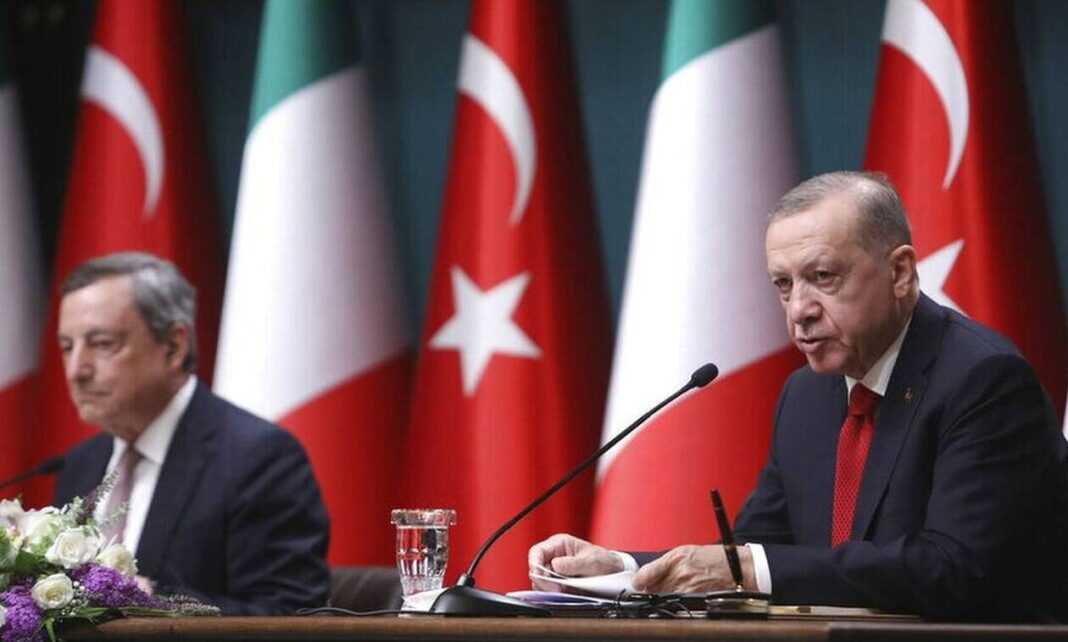 Κατηγορίες κατά της Ελλάδας εκτόξευσε ο Τούρκος πρόεδρος, Ρετζέπ Ταγίπ Ερντογάν, κατά την επίσκεψη στην Αγκυρα του πρωθυπουργού της Ιταλίας Μάριο Ντράγκι.