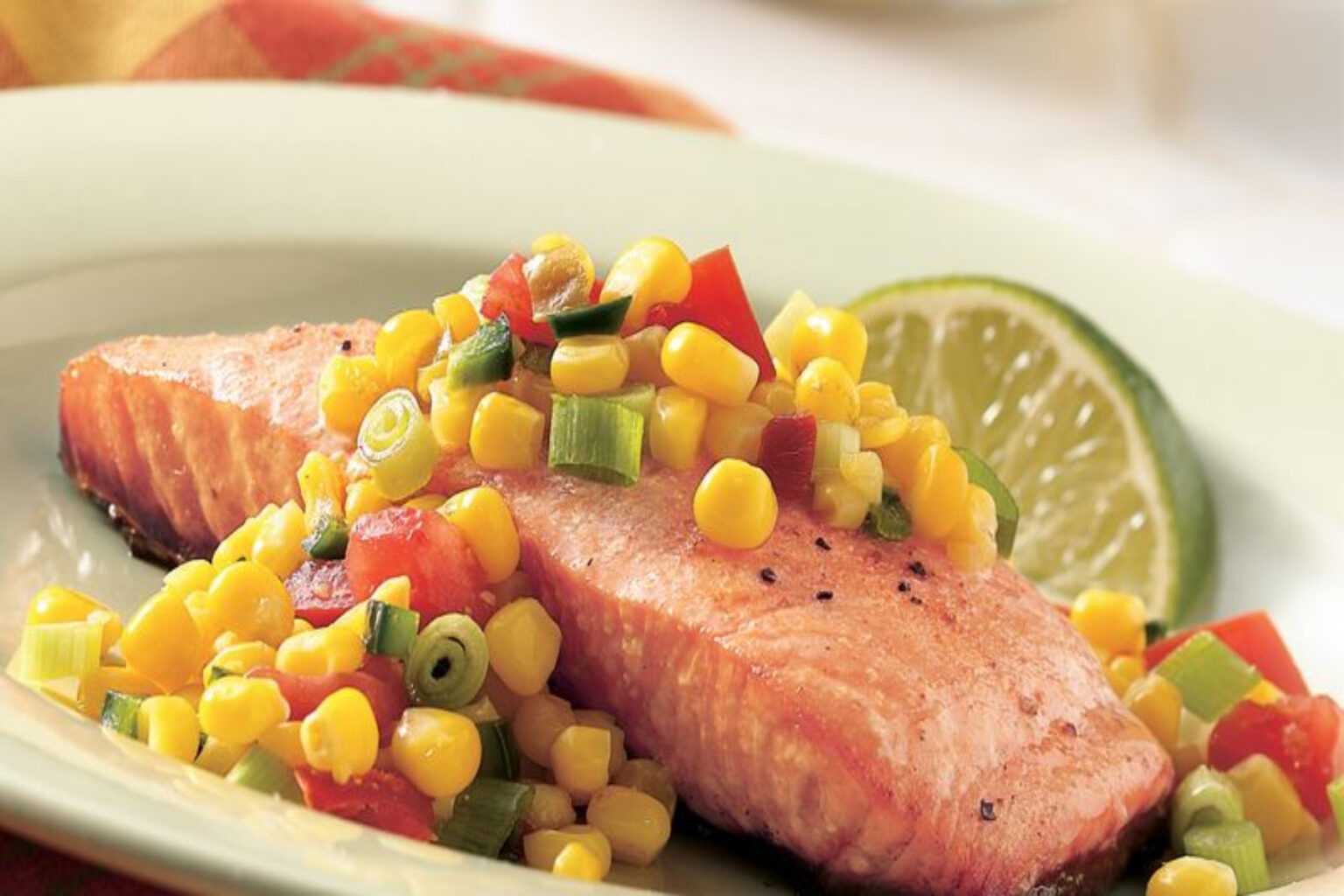 ΒΗΜΑ 3: Ανακατέψτε το υπόλοιπο ξύσμα και το χυμό λάιμ στο καλαμπόκι και ανακατέψτε όλα τα υπόλοιπα υλικά. Ζεστάνετε ένα τηγάνι και ψήστε τον σολομό για 2 λεπτά από κάθε πλευρά, ώστε να είναι ακόμα λίγο ροζ στο κέντρο. Σερβίρετε με τη σαλάτα salsa με επιπλέον φέτες λάιμ, αν θέλετε, για στύψιμο.