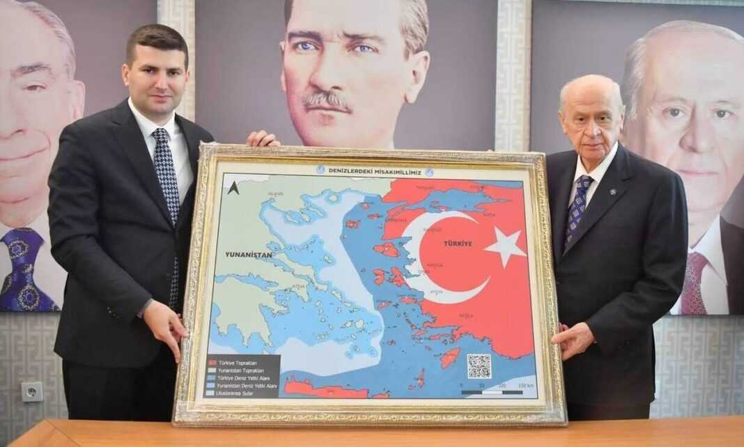 Ρεπορτάζ της τηλεόρασης ΗΑΒΕR GLOBAL αναφέρει: «Ξεσήκωσε την Αθήνα ο χάρτης που έδωσε στον Ντεβλέτ Μπαχτσελί η οργάνωση των νέων του κόμματος του. Διότι ο χάρτης εμφανίζει ως τουρκικά τα νησιά του Αιγαίου και την Κρήτη. Οι Έλληνες αξιωματούχοι κατηγορούν την Τουρκία πως αυξάνουν την ένταση».