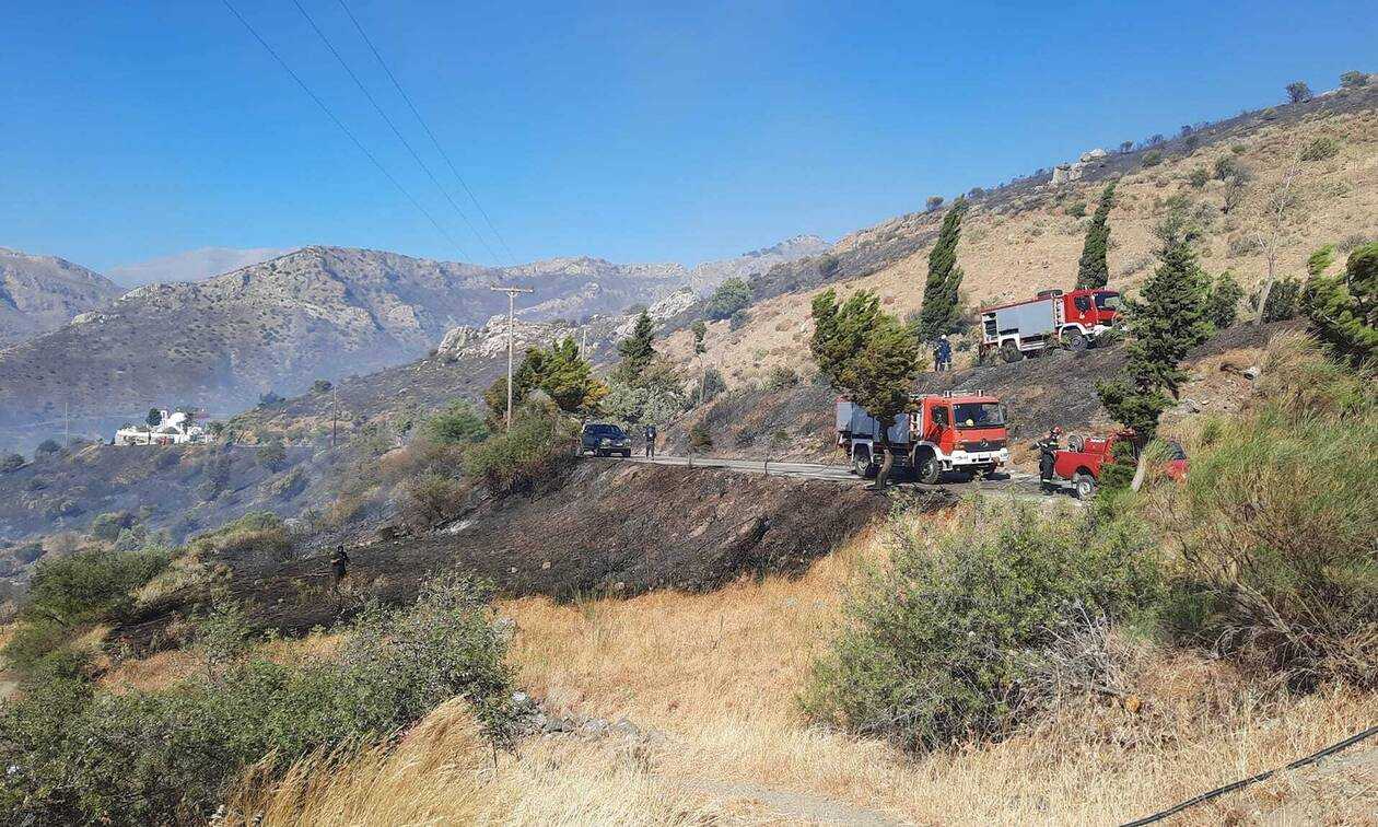 Για την κατάσβεσή της κινητοποιήθηκαν επίγειες και εναέριες δυνάμεις και συγκεκριμένα 10 πυροσβέστες, 4 οχήματα και 2 ελικόπτερα.