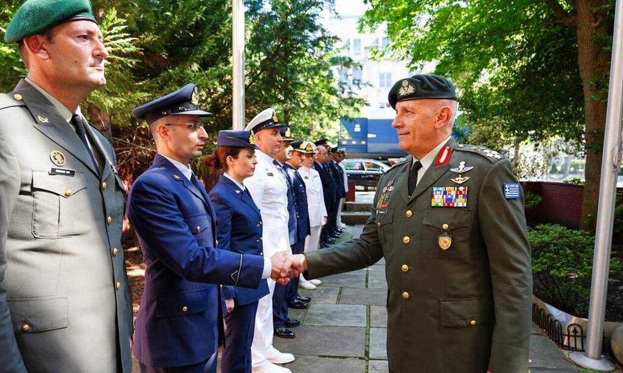 Ειδικότερα, την Δευτέρα 11 Ιουλίου 2022, ο Αρχηγός ΓΕΕΘΑ επισκέφθηκε την Πρεσβεία της Χώρας μας στην Ουάσιγκτον όπου συναντήθηκε σε ιδιαίτερα θερμό κλίμα με την Πρέσβη της Ελλάδος στις ΗΠΑ κ. Αλεξάνδρα Παπαδοπούλου, με την οποία συζήτησαν θέματα αμοιβαίου ενδιαφέροντος, με ιδιαίτερη έμφαση στην συλλογική και διαρκή προσπάθεια εμβάθυνσης των Ελληνοαμερικανικών σχέσεων για την ανάδειξη των κοινών αξιών και συμφερόντων των 2 Χωρών και την εδραίωση της ασφάλειας και της σταθερότητας στην περιοχή της Ανατολικής Μεσογείου.