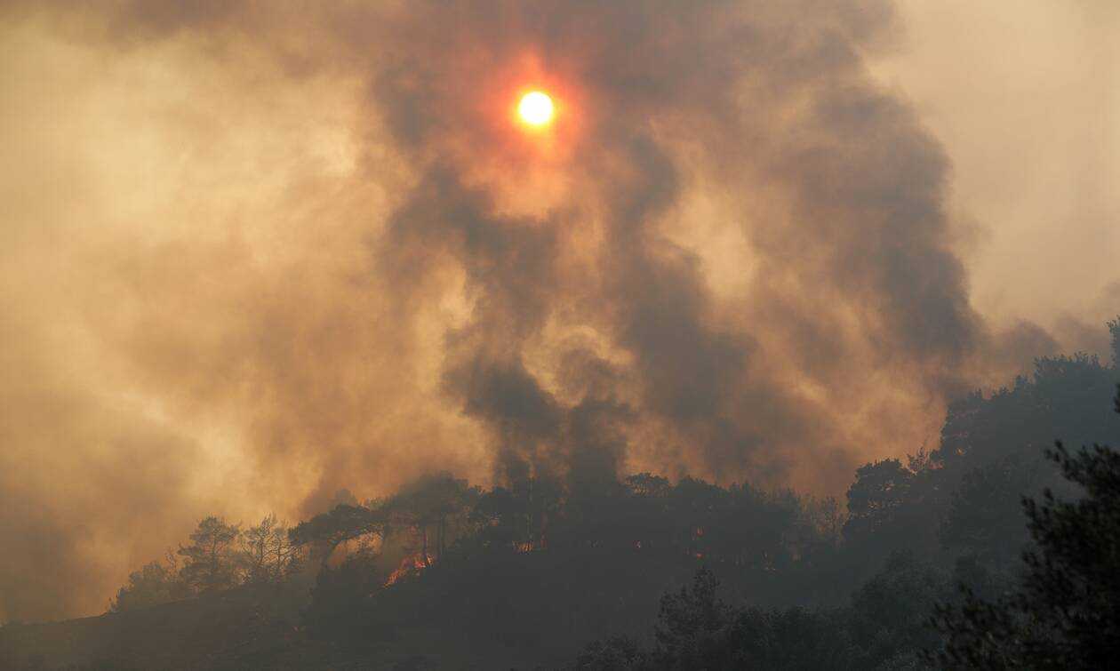 Σύμφωνα με την ΕΡΤ, η φωτιά κινείται απειλητικά προς τα σπίτια του χωριού.