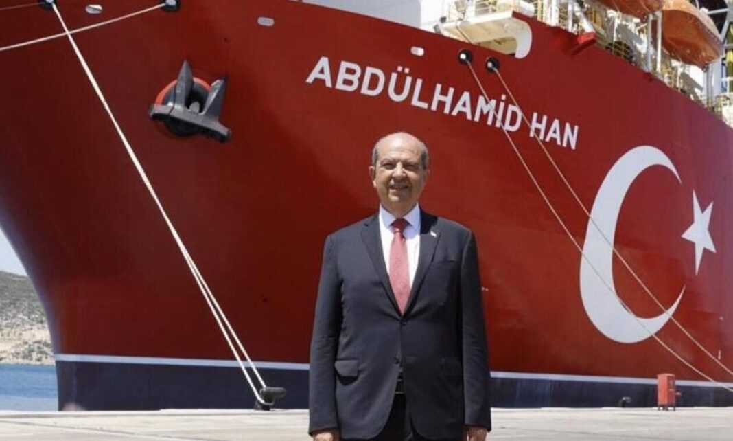 Στο λιμάνι Τάσουτζου της Μερσίνης για να επισκεφθεί το γεωτρύπανο «Αμντουλχαμίντ Χαν» βρέθηκε ο Τ/κ ηγέτης Ερσίν Τατάρ, ποζάροντας μάλιστα προκλητικά μπροστά στον φακό.