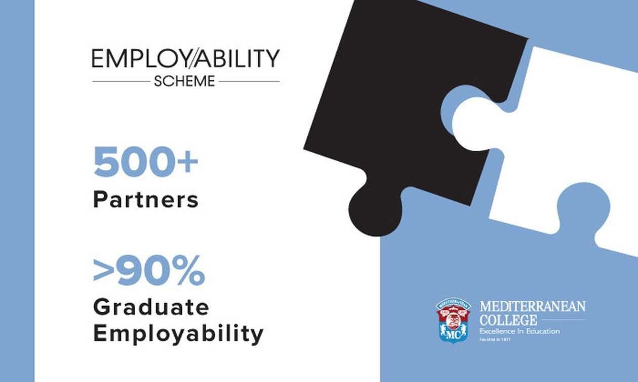 Το Employability Scheme® του Mediterranean College (MC) αποτελεί το 1ο Ολοκληρωμένο Σχέδιο Ενίσχυσης της Απασχολησιμότητας στον χώρο της ιδιωτικής εκπαίδευσης, που προετοιμάζει τους φοιτητές να ανταποκριθούν αποτελεσματικά στις απαιτήσεις της σύγχρονης αγοράς εργασίας. To MC– Employability Scheme® σχεδιάστηκε για να βοηθήσει εσένα, τον φοιτητή, να αναπτύξεις τις επαγγελματικές σου δεξιότητες, να σου καλλιεργήσει την έννοια της δια βίου μάθησης και να σε δικτυώσει με εργοδότες και επαγγελματίες. Διαθέτοντας ένα ευρύ φάσμα στρατηγικών συνεργασιών με επιχειρήσεις, οργανισμούς και φορείς, το οργανωμένο πλάνο απασχολησιμότητας που διαθέτουμε επιτυγχάνει >90% επαγγελματική απορρόφηση των αποφοίτων μας!