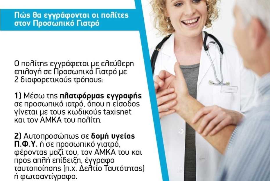 Ο πολίτης εγγράφεται σε προσωπικό γιατρό με τους εξής τρόπους: