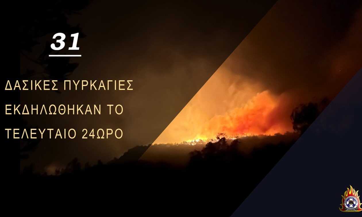 Συγκεκριμένα, σύμφωνα με επίσημη ενημέρωση της Πυροσβεστικής, σε ένα 24ωρο εκδηλώθηκαν 31 δασικές πυρκαγιές, με την ανταπόκριση των δυνάμεων να είναι άμεση και τις περισσότερες εστίες να αντιμετωπίζονται αποτελεσματικά λίγες στιγμές μετά την έναρξη της φωτιάς.