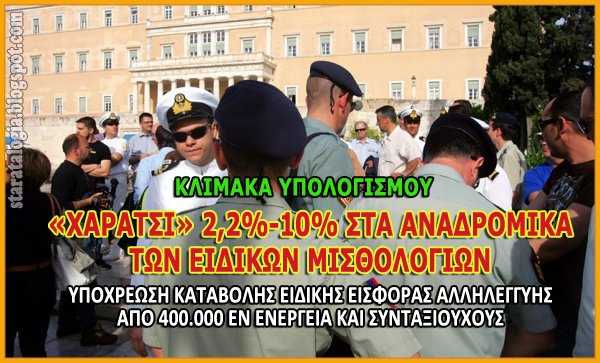 «ΛΟΓΑΡΙΑΣΜΟΣ» από 2,2%-10% για 400.000 ε.ε. και ε.α. Ειδικών Μισθολογίων (ΠΙΝΑΚΑΣ)