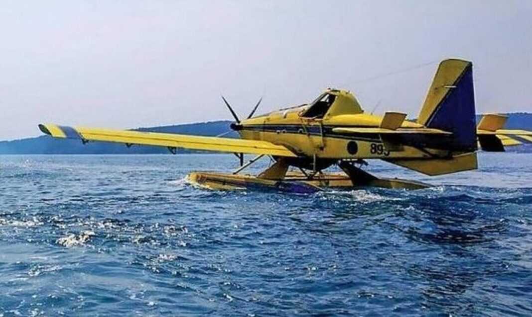 Σε αναγκαστική προσθαλάσσωση υποχρεώθηκαν οι χειριστές ενός air tractor που επιχειρούσε στη φωτιά στην Πέραμο.