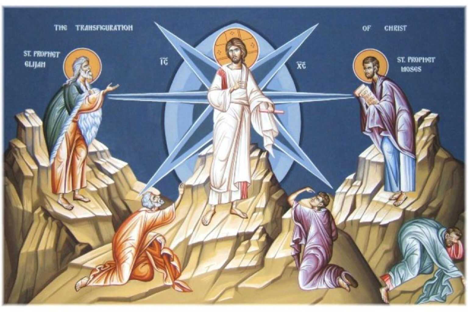 Ο Κύριος πήρε τους τρεις πιο κοντινούς του μαθητές, τον Πέτρο, τον Ιάκωβο και τον Ιωάννη και ανέβηκαν στο όρος Θαβώρ, να προσευχηθούν. Εκεί μεταμορφώθηκε μπροστά τους κι έλαμψε το πρόσωπό, ενώ τα ρούχα Του έγιναν κατάλευκα και αστραφτερά. Δεξιά και αριστερά Του φάνηκαν δύο άνδρες, ο Μωυσής και ο Ηλίας, που συνομιλούσαν μαζί Του για τον θάνατό Του και την εκπλήρωση της αποστολής Του.