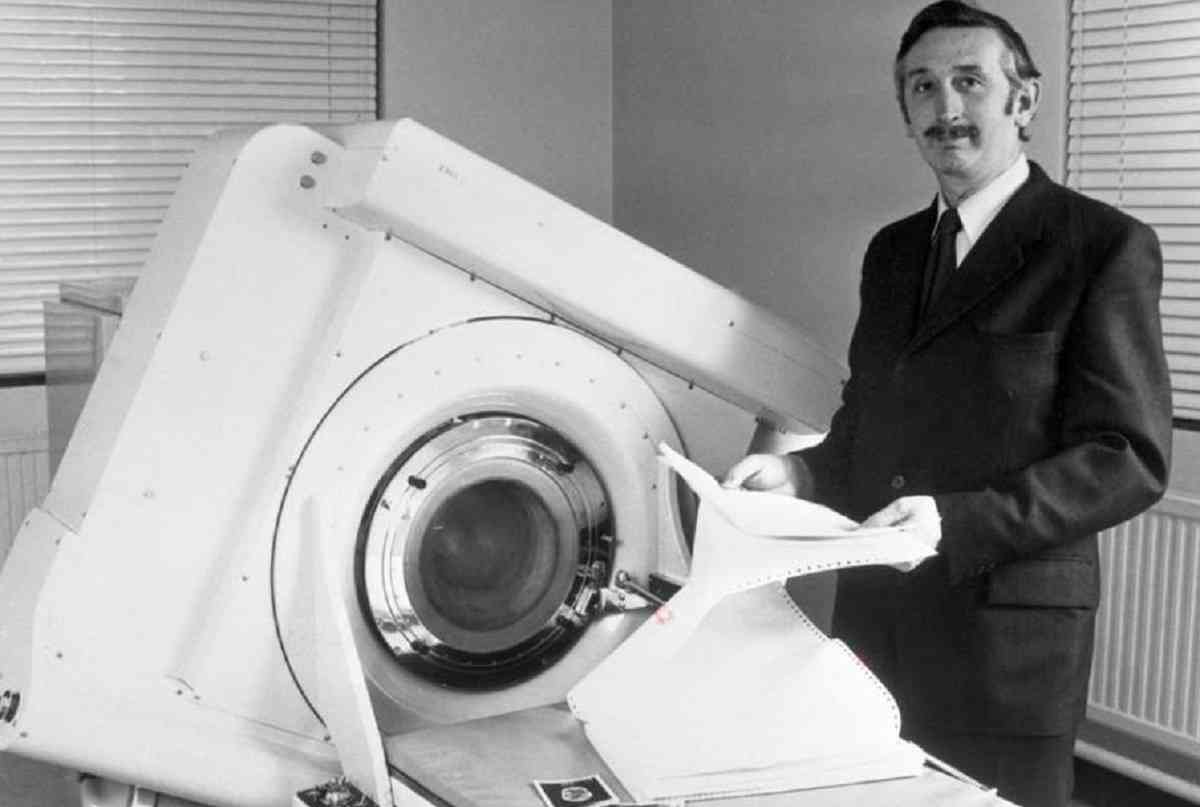 Κατά τη διάρκεια μιας εκδρομής στη χώρα, ο Χάουνσφιλντ σκέφτηκε ότι μπορούσε κανείς να προσδιορίσει τι υπήρχε μέσα σε ένα κουτί λαμβάνοντας μετρήσεις ακτίνων Χ σε όλες τις γωνίες γύρω από το αντικείμενο. Στη συνέχεια άρχισε να κατασκευάζει έναν υπολογιστή που θα μπορούσε να λαμβάνει εισροές από ακτίνες Χ σε διάφορες γωνίες για να δημιουργήσει μια εικόνα του αντικειμένου σε «φέτες». Η εφαρμογή αυτής της ιδέας στον ιατρικό τομέα τον οδήγησε να προτείνει αυτό που σήμερα είναι γνωστό ως υπολογιστική τομογραφία. Εκείνη την εποχή, ο Χάουνσφιλντ δεν γνώριζε τη δουλειά που είχε κάνει ο Κόρμακ στα θεωρητικά μαθηματικά για μια τέτοια συσκευή. Ο Χάουνσφιλντ κατασκεύασε ένα πρωτότυπο σαρωτή κεφαλής και τον δοκίμασε πρώτα σε έναν διατηρημένο ανθρώπινο εγκέφαλο, μετά σε έναν φρέσκο εγκέφαλο αγελάδας από ένα κρεοπωλείο και αργότερα στον εαυτό του. Την 1η Οκτωβρίου 1971, η αξονική τομογραφία εισήχθη στην ιατρική πρακτική με μια επιτυχημένη σάρωση σε ασθενή με εγκεφαλική κύστη στο νοσοκομείο Atkinson Morley στο Wimbledon, Λονδίνο, Ηνωμένο Βασίλειο. Το 1975, ο Χάουνσφιλντ κατασκεύασε έναν σαρωτή ολόκληρου του σώματος. Οι αρχές της υπολογιστικής τομογραφίας που αναπτύχθηκαν από τον Χάουνσφιλντ παραμένουν σε χρήση σήμερα (2022).
