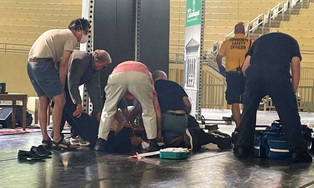 Ο Δρ Mάρτιν Χάσκελ από το Dayton του Οχάιο, ένας από τους γιατρούς που έσπευσαν να βοηθήσουν τον Ρουσντί μετά την επίθεση είπε ότι παρά την παρουσία δύο αστυνομικών που φρουρούσαν την εκδήλωση , το πλήθος ήταν τελικά που παρενέβη για να καθηλώσει τον δράστη.