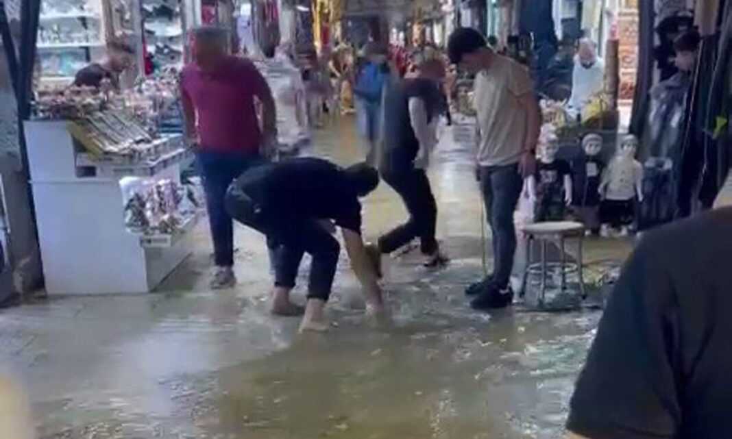 Έντονη βροχόπτωση έκανε ποτάμι τη μεγάλη αγορά (Kapali Carsi) στο ιστορικό κέντρο της Πόλης, προκαλώντας προβλήματα σε εμπόρους, κατοίκους και περαστικούς, οι οποίοι δεν περίμεναν τα έντονα καιρικά φαινόμενα να πλήξουν τόσο έντονα το ιστορικό εμπορικό παζάρι.