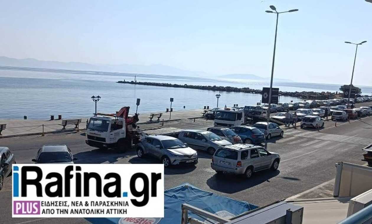 Στο λιμάνι της Ραφήνας βρέθηκαν τέσσερις γερανοί για να απομακρύνουν τα παράνομα σταθμευμένα οχήματα.