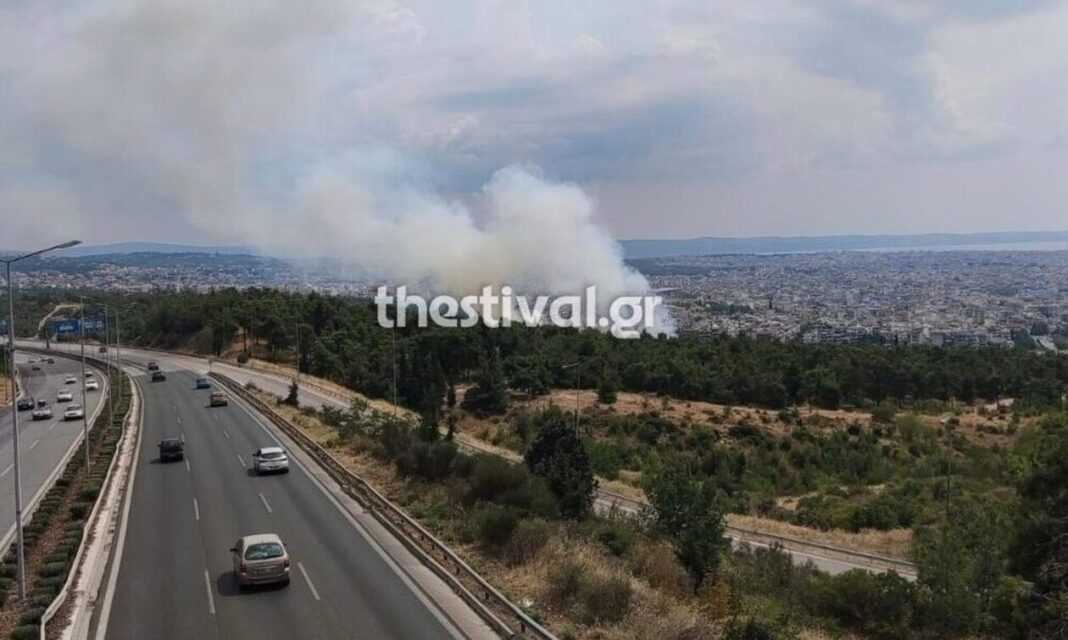 Η φωτιά ξεκίνησε κάτω από τον περιφερειακό μεταξύ του κόμβου Αγίου Παύλου και την έξοδο της Τριανδίας.