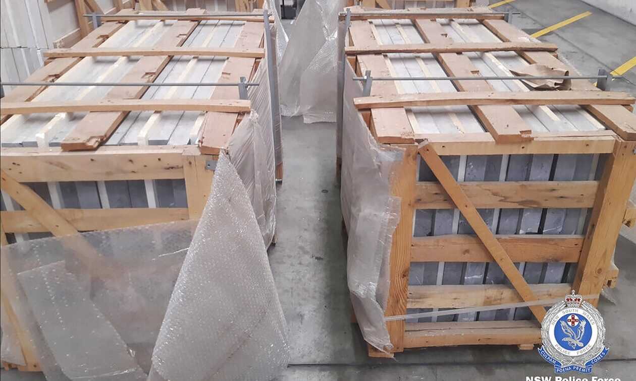 Η αστυνομία βρήκε 1.800 κιλά από αυτό που τοπικά είναι γνωστό ως «ice» (πάγος) μέσα σε εμπορευματοκιβώτια σε λιμάνι του Σίδνεϊ. Hταν κρυμμένο σε μάρμαρο και έχει αξία πάνω από 1,6 δισεκατομμύρια δολάρια Αυστραλίας (1,1 δισεκατομμύρια δολάρια)