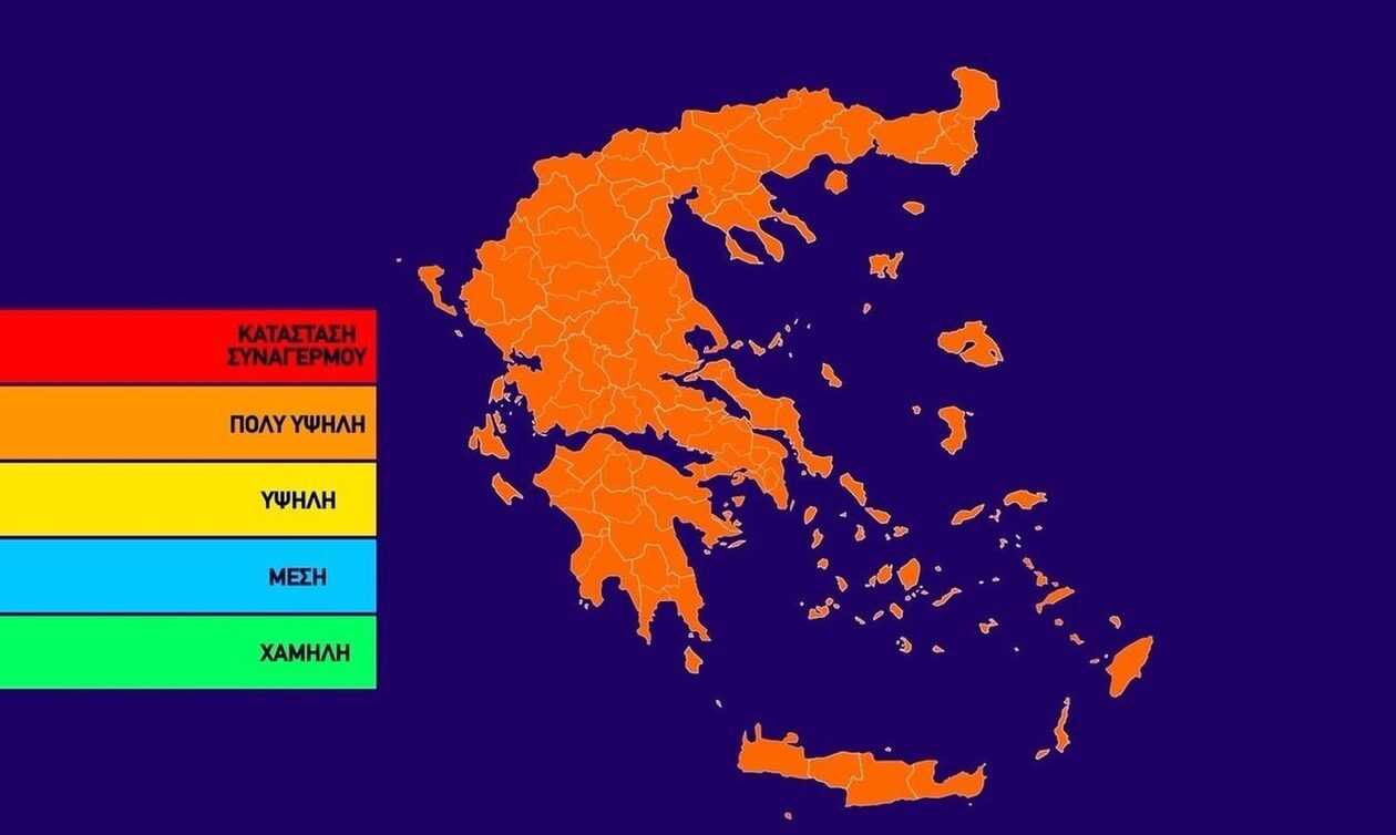 Δείτε στο χάρτη, τις περιοχές που αντιμετωπίζουν υψηλό κίνδυνο σήμερα Σάββατο, 27 Αυγούστου