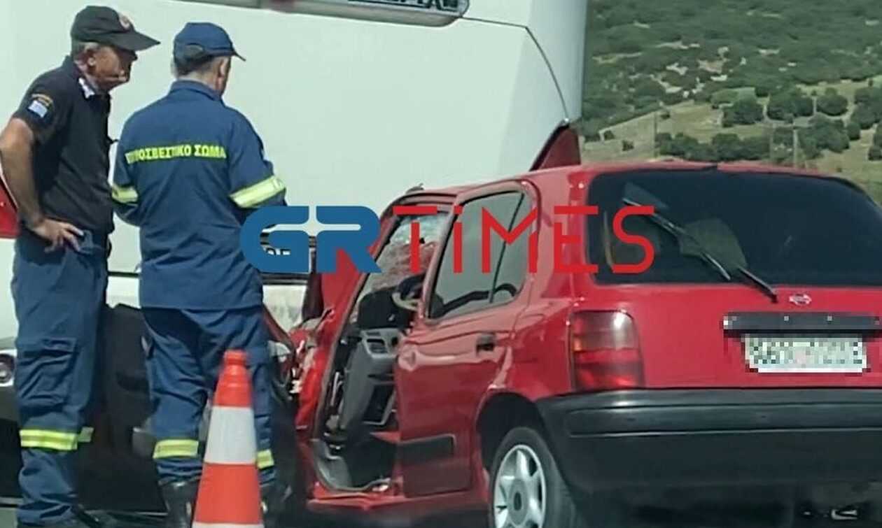 Βέροια: ΙΧ έπεσε πάνω σε τουριστικό λεωφορείο στην Εγνατία Οδό με αποτέλεσμα το θάνατο της οδηγού του αυτοκινήτου