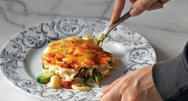 Λαχανικά και ζυμαρικά με μια ελαφριά μπεσαμέλ, χωρίς αυγά και βούτυρο, ψημένα στον φούρνο. Ο καλύτερος τρόπος για να δοκιμάσουν τα παιδιά το μπρόκολο και να τους αρέσει.