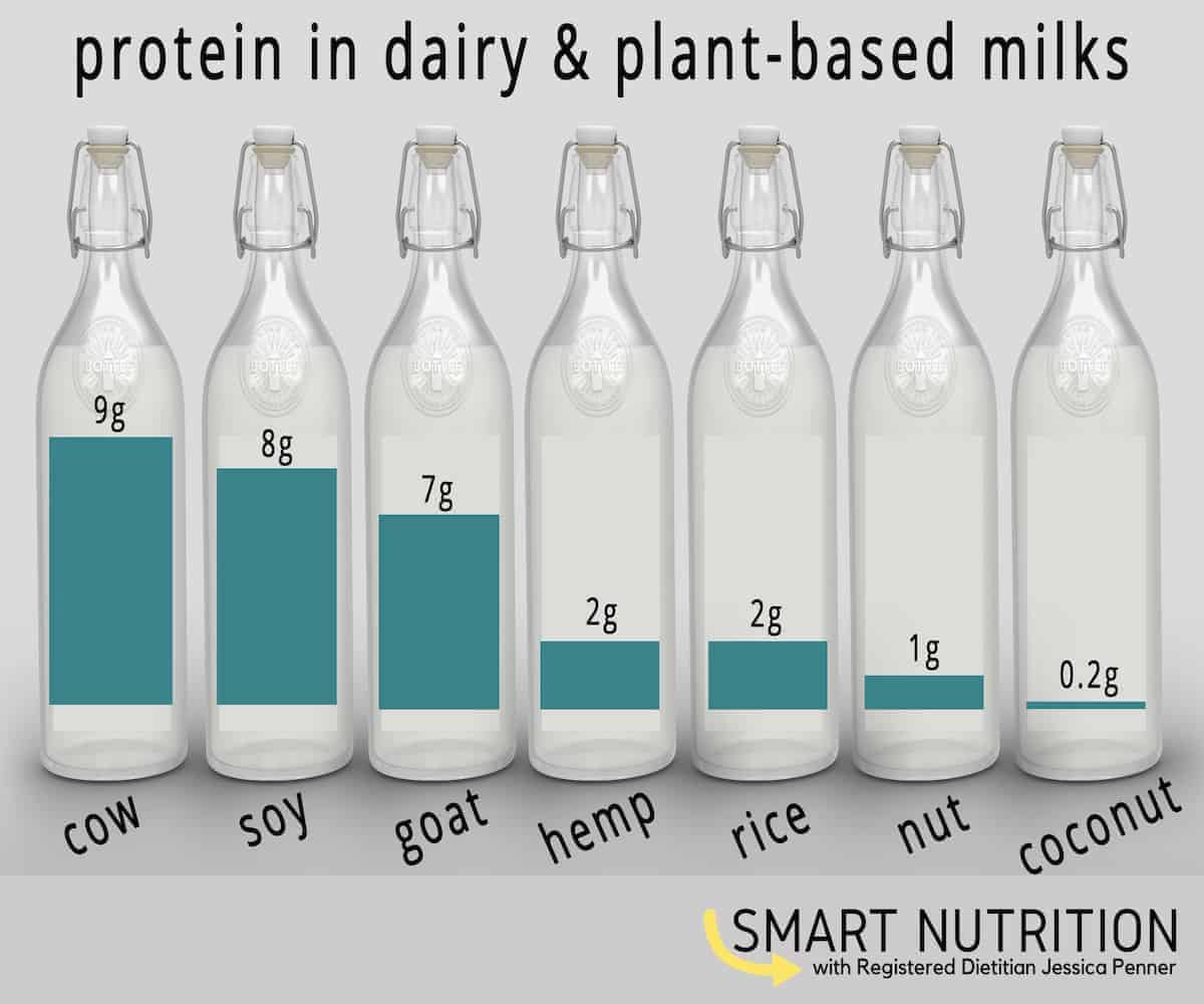 Το γάλα σόγιας προσφέρει τη μεγαλύτερη ποσότητα πρωτεΐνης σε σύγκριση με τις άλλες μη γαλακτοκομικές εναλλακτικές λύσεις. Περιέχει επίσης σημαντική ποσότητα ασβεστίου, με αριθμούς σχετικά παρόμοιους με το γάλα αμυγδάλου.