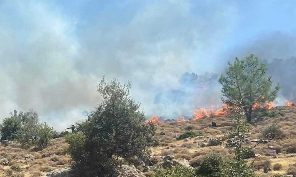 Η πυρκαγιά καίει σε χαμηλή βλάστηση, ενώ δεν απειλείται κάποιος οικισμός.