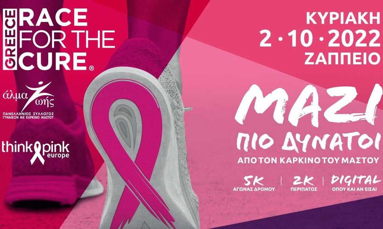 Ο Πανελλήνιος Σύλλογος Γυναικών με Καρκίνο Μαστού «Άλμα Ζωής» σας προσκαλεί την Κυριακή 2 Οκτωβρίου στο Greece Race for the Cure® 2022, συμβολικό αγώνα δρόμου και περίπατο ενάντια στον καρκίνο του μαστού, που θα πραγματοποιηθεί για 14η χρονιά σε συνδιοργάνωση με τον Οργανισμό Πολιτισμού, Αθλητισμού και Νεολαίας Δήμου Αθηναίων (ΟΠΑΝΔΑ).