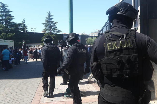 Παράλληλα, το ελικόπτερο της ΕΛ.ΑΣ. πετούσε πάνω από το περίπτερο της Αστυνομίας με ελεύθερους σκοπευτές.