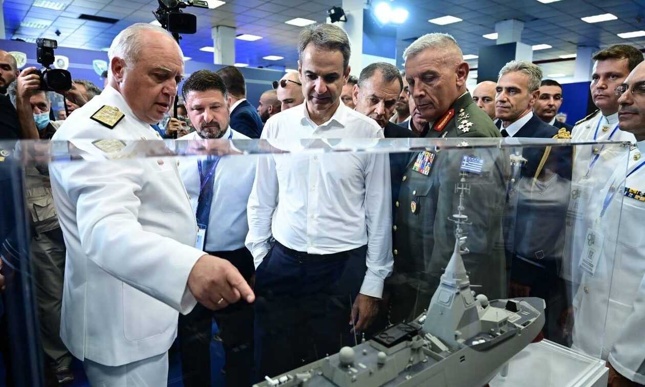 Ο κ. Μητσοτάκης στάθηκε για αρκετή ώρα μπροστά σε ένα μοντέλο φρεγάτας Belh@rra, με τον ίδιο να δείχνει ιδιαίτερο ενδιαφέρον και να ενημερώνεται πλήρως από τον Αρχηγό ΓΕΝ, Αντιναύαρχο Στυλιανό Πετράκη και τον Αρχηγό ΓΕΕΘΑ, για τις δυνατότητες του πλοίου.