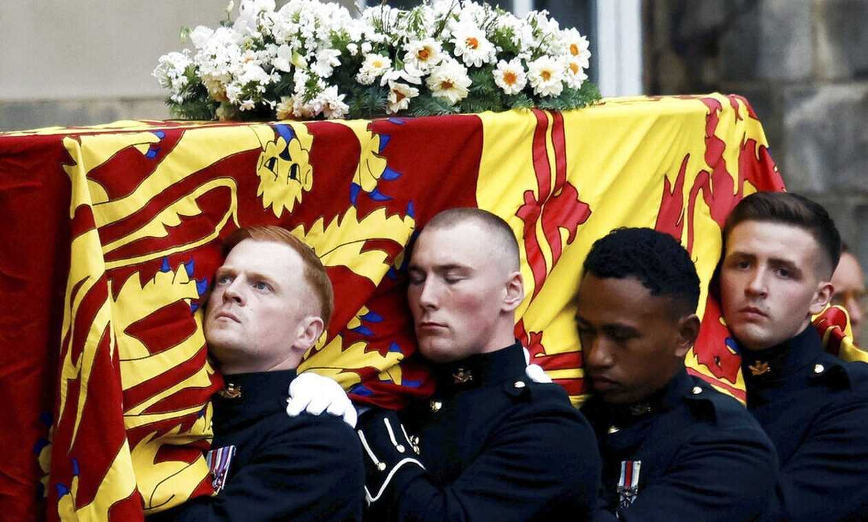 Νωρίτερα σε μια θλιβερή πομπή, το ντυμένο με τη σημαία της Αγγλίας φέρετρο της Βασίλισσας Ελισάβετ Β «είχε ταξιδέψει» αργά στην ύπαιθρο της Σκωτίας από το αγαπημένο της Κάστρο Μπαλμόραλ στο Εδιμβούργο. Οι πενθούντες πλημμύρισαν τους δρόμους της πόλης και τις γέφυρες των αυτοκινητοδρόμων ή τους επαρχιακούς δρόμους με αυτοκίνητα και τρακτέρ για να συμμετάσχουν στο ιστορικό αντίο στη μονάρχη που βασίλεψε επί 70 χρόνια.