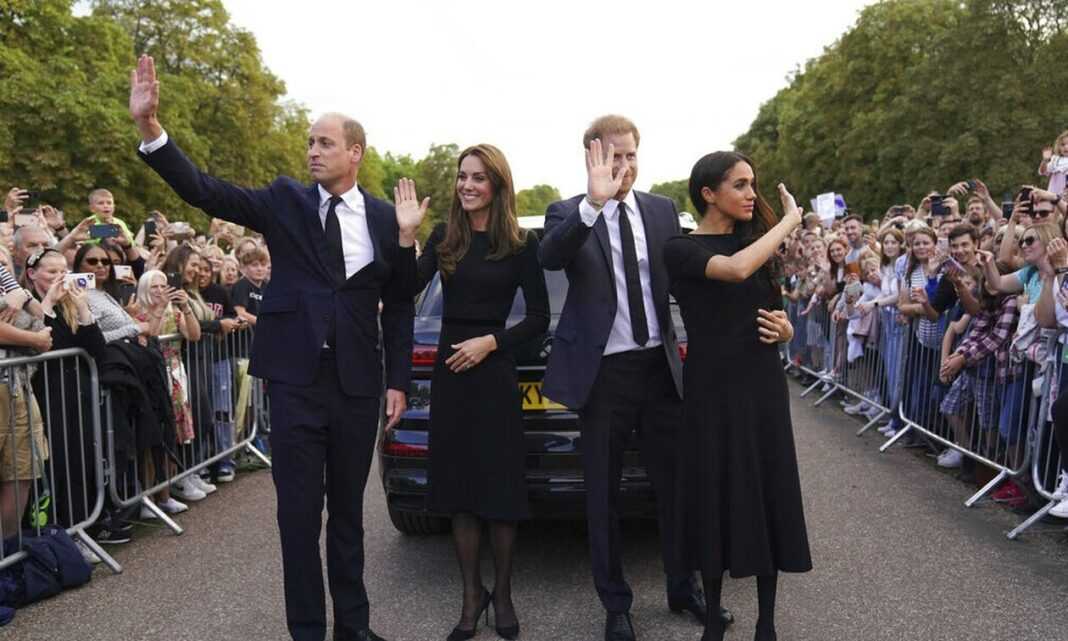 Η Μέγκαν Μαρκλ και ο Πρίγκιπας Χάρι, σε μία σπάνια επίδειξη ενότητας με το διάδοχο πλέον του χρόνου, πρίγκιπα Ουίλιαμ και τη σύζυγό του Κέιτ, ενώθηκαν το Σάββατο για να χαιρετήσουν το πλήθος που θρηνούσε για τη βασίλισσα Ελισάβετ στο Κάστρο του Ουίνδσορ.