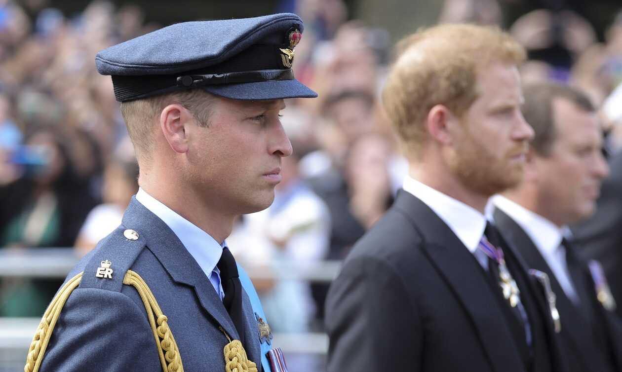 Ο πρίγκιπας Ουίλιαμ και ο πρίγκιπας Χάρι περπάτησαν μαζί πίσω από τον πατέρα τους, βασιλιά Κάρολο Γ καθώς ακολούθησαν το φέρετρο της βασίλισσας από τα Ανάκτορα του Μπάκιγχαμ προς το βρετανικό κοινοβούλιο
