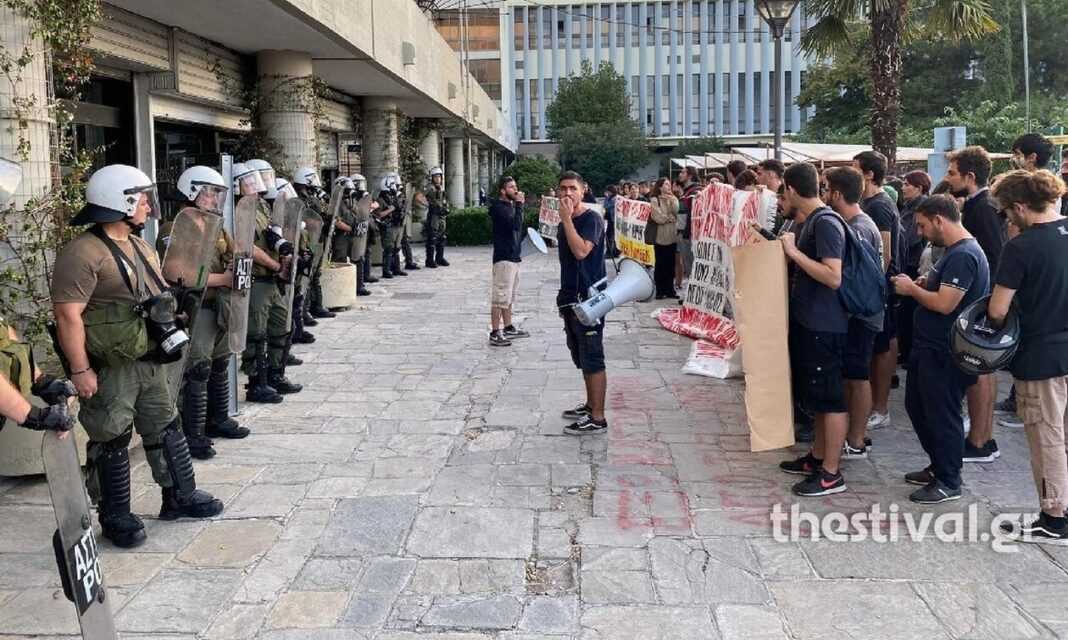 Διαμαρτυρία κατά της πανεπιστημιακής αστυνομίας πραγματοποιούν αυτή την ώρα φοιτητές μπροστά στην πρυτανεία του ΑΠΘ