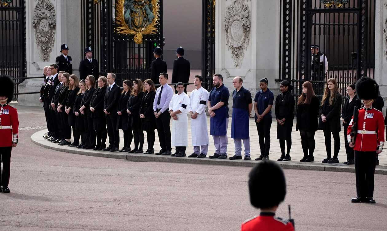Το προσωπικό του Μπάκιγχαμ περίμενε έξω από το παλάτι για να αποτίσει τον τελευταίο φόρο τιμής στη βασίλισσα Ελισάβετ.