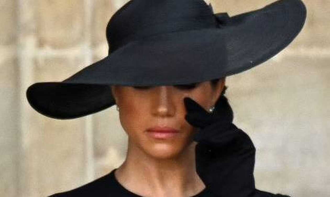 Κηδεία Βασίλισσας Ελισάβετ: Η Μέγκαν Μαρκλ εθεάθη να σκουπίζει τα δάκρυά της σήμερα καθώς παρακολουθούσε το φέρετρο της Βασίλισσας Ελισάβετ Β’ να μεταφέρεται στο Αβαείο του Ουέστμινστερ.