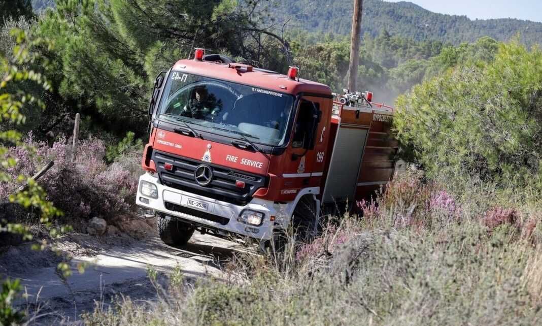 Μέχρι στιγμής, η φωτιά δεν απειλεί κατοικημένη περιοχή, σύμφωνα με την Πυροσβεστική.