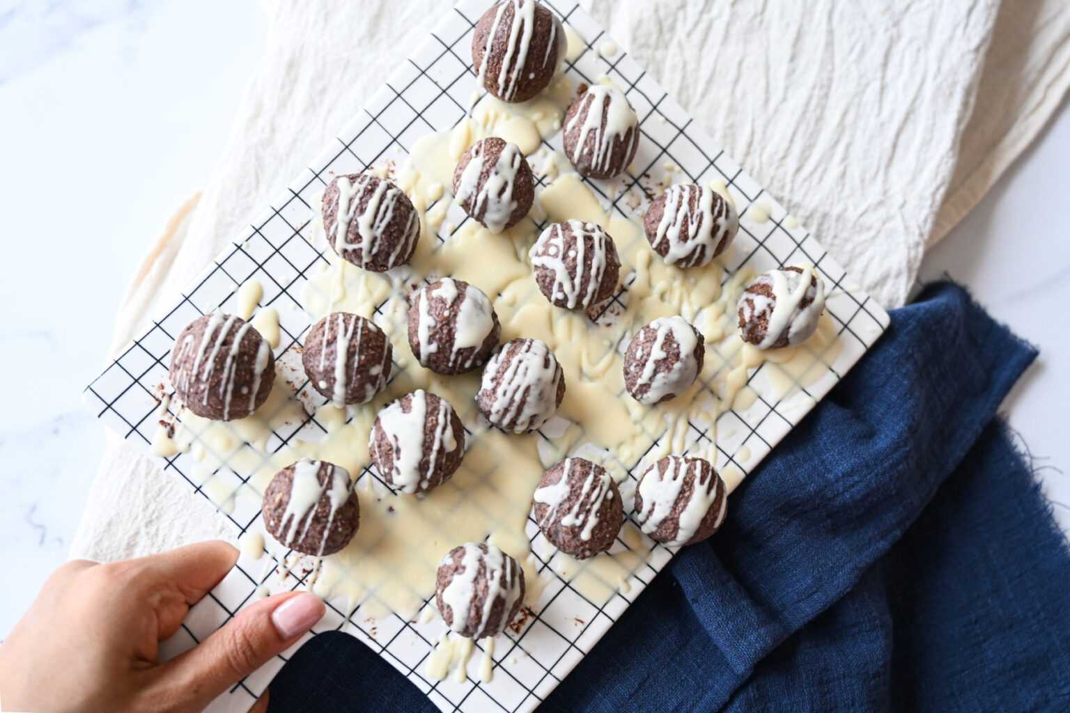 Βήμα 3: Απλώνουμε τα ραντίσματα σε ένα πιάτο. Χρησιμοποιούμε λαδωμένα χέρια για να κυλήσετε 3 επίπεδα κουταλάκια του γλυκού μείγμα σε μπάλες. Τυλίγουμε τα μπαλάκια και τα πασπαλίζουμε και τακτοποιούμε σε μικρές χάρτινες θήκες για να σερβίρουμε.