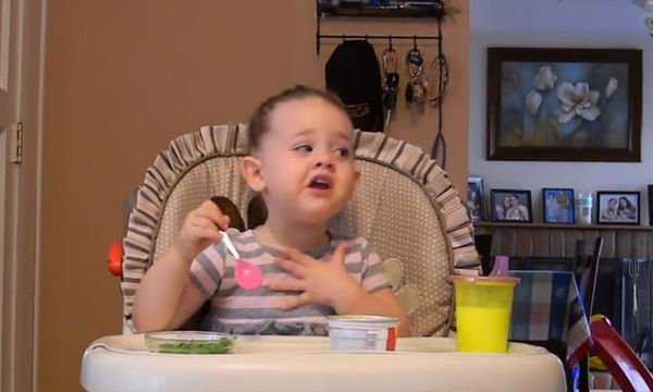 Κάτι αντίστοιχο πρέπει να συνέβη και σε αυτή την οικογένεια! Η μικρούλα, τρώει αμέριμνη τον αρακά της μέχρι που κάποια στιγμή, πέφτει μερικός πάνω στο καρεκλάκι φαγητού της. Τότε πολύ φυσικά και σαν να μην συμβαίνει τίποτε, αρχίζει να «καταριέται» που της έπεσε το φαγητό από το κουτάλι.