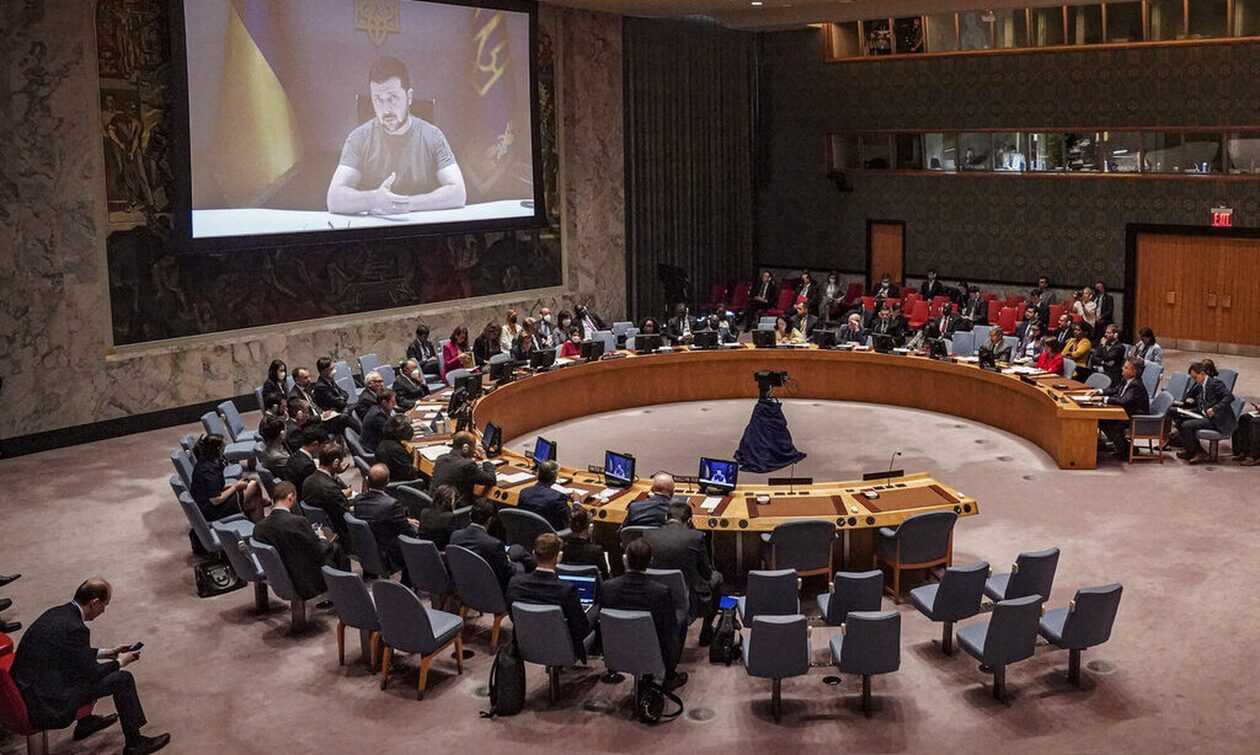 Παίρνοντας το λόγο με βιντεοσκοπημένο μήνυμά του, ο Ουκρανός πρόεδρος Βολοντίμιρ Ζελένσκι, όπως και αρκετοί αντιπρόσωποι κρατών μελών του Συμβουλίου Ασφαλείας, κατήγγειλε για ακόμη μια φορά τις «παρωδίες δημοψηφισμάτων».