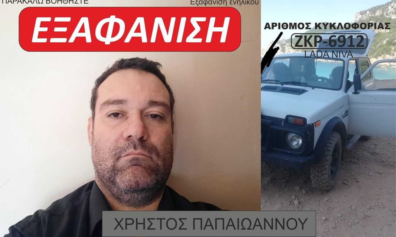 Η εξαφάνισή του έγινε γνωστή από τον αδερφό του Γιάννη Παπαϊωάννου πριν λίγες ώρες, ο οποίος δημοσίευσε μια φωτογραφία του στα μέσα κοινωνικής δικτύωσης.