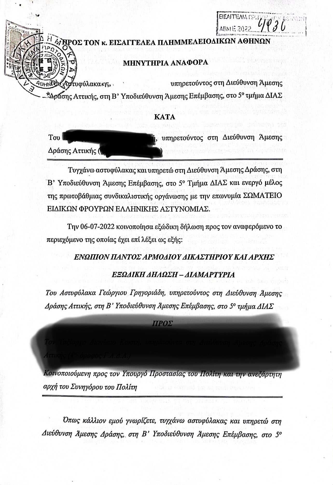 Γνωστός συνδικαλιστής των Ειδικών Φρουρών που υπηρετεί στην ΔΙ.ΑΣ. μάλιστα, έχει υποβάλλει μήνυση για κακοποιητική εργασιακή συμπεριφορά που καταγγέλλει ότι υπέστη.