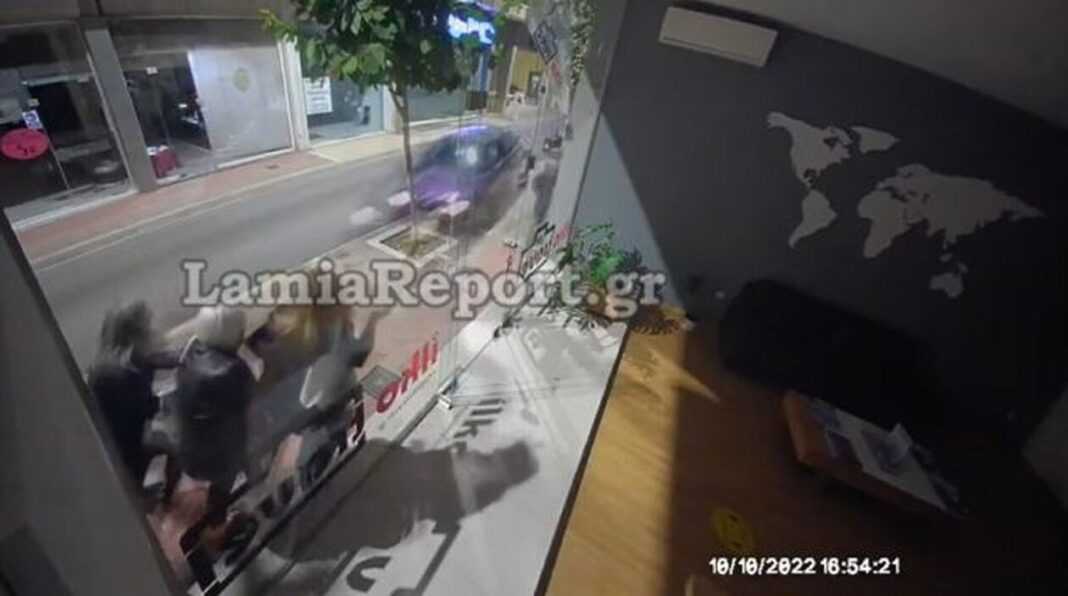 Αρχικά θα δείτε ότι το αυτοκίνητο που οδηγεί 22χρονος Λαμιώτης ανεβαίνει στο δεξί πεζοδρόμιο και περνάει ξυστά από δυο κοπέλες, χτυπώντας τη μια ελαφρά στο χέρι.