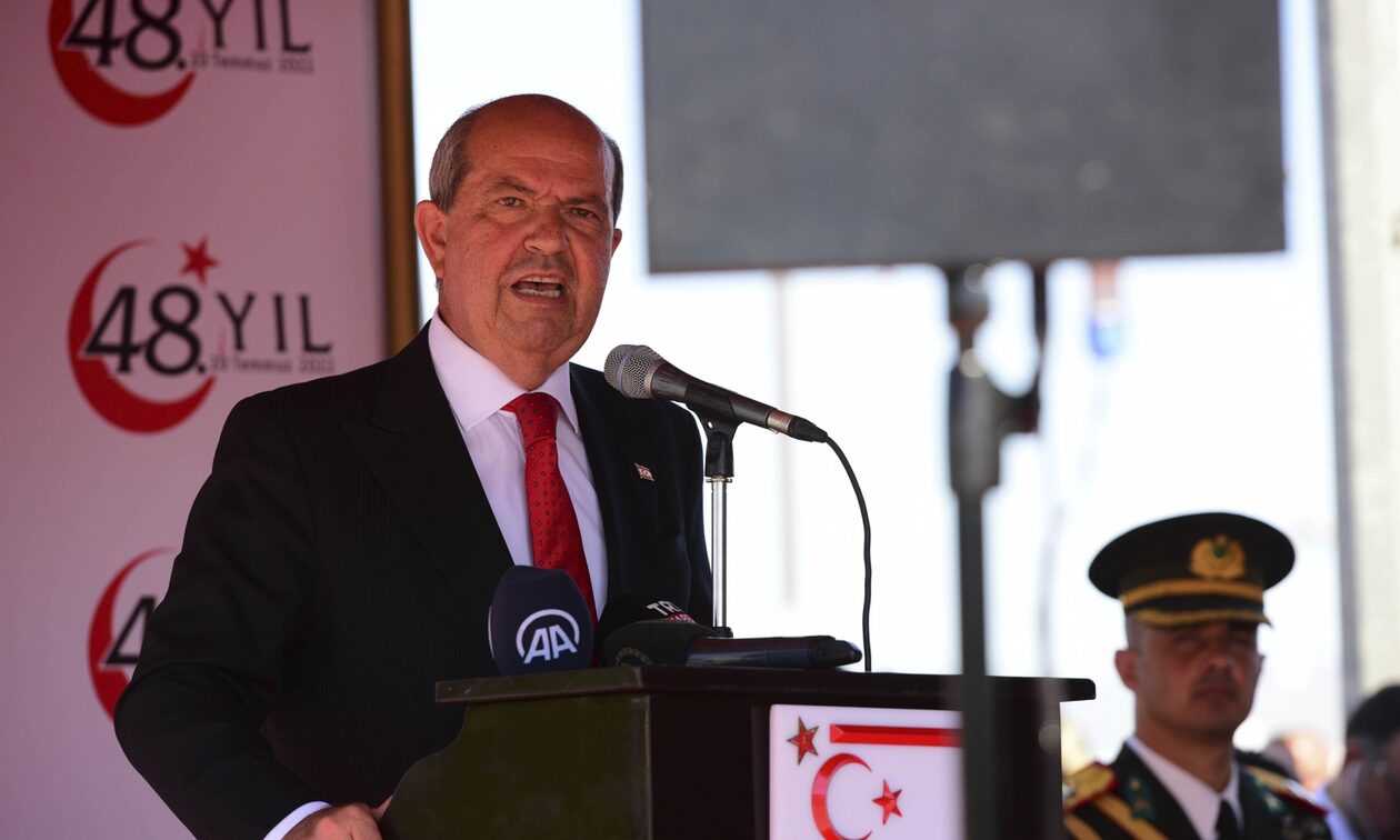 Συνέχισε μάλιστα χαρακτηρίζοντας το Ελληνο-Κυπριακό δίδυμο βλάσφημο. «Το ελληνο-ε/κ δίδυμο κραυγάζει. Κατά τη γνώμη μου, το δίδυμο επανεκτίμησε την κατάσταση, ειδικά μετά από αυτόν τον πόλεμο Ρωσίας-Ουκρανίας, όπου αναδείχθηκαν οι μεγάλες δυνατότητες της Δημοκρατίας της Τουρκίας, η ηγεσία του προέδρου της Τουρκίας, οι προσπάθειες που έγιναν να αποτραπεί η πείνα στον κόσμο από το διάδρομο σιτηρών που άνοιξε, τα βήματα που έκανε η Τουρκική Δημοκρατία, προκαλώντας το φθόνο της Ελλάδας. Τώρα βέβαια τι θα κάνουν; Προσφεύγουν σε παιχνίδια. Κανένα από αυτά τα παιχνίδια δεν πείθει. Η δύναμη και οι δυνατότητες της Τουρκίας είναι ξεκάθαρες. Είναι ξεκάθαρο τι τους συνέβη. Καταρχάς ο πληθυσμός της Κύπρου είναι βέβαιος, η διάμετρός του είναι σίγουρη. Επομένως, πόσο θα οπλιστούν εναντίον ποιου; Πρόκειται για προσωρινή κόλπα κατά τη γνώμη μου, που παίζουν με τους δικούς τους ανθρώπους και την πολιτική τους. Υπάρχουν επιλογές και από τις δύο πλευρές. Εκλογές υπάρχουν και στην Ελλάδα και στη Νότια Κύπρο τους επόμενους μήνες. Ως εκ τούτου, ενδέχεται να υπάρξουν κάποιες ρητορικές για εσωτερική κατανάλωση. Γι’ αυτό πιστεύω ότι όλα αυτά είναι προσωρινά. Αυτό που είναι σημαντικό είναι η ανάπτυξη του δυναμικού της Δημοκρατίας της Τουρκίας και η ενίσχυση της Τουρκικής Δημοκρατίας της Βόρειας Κύπρου ταυτόχρονα, προκειμένου να διατηρήσουμε την ύπαρξή μας σε αυτή τη γεωγραφία. Αυτή είναι όλη η ελπίδα και η επιθυμία μου», ανέφερε χαρακτηριστικά ο Τατάρ.