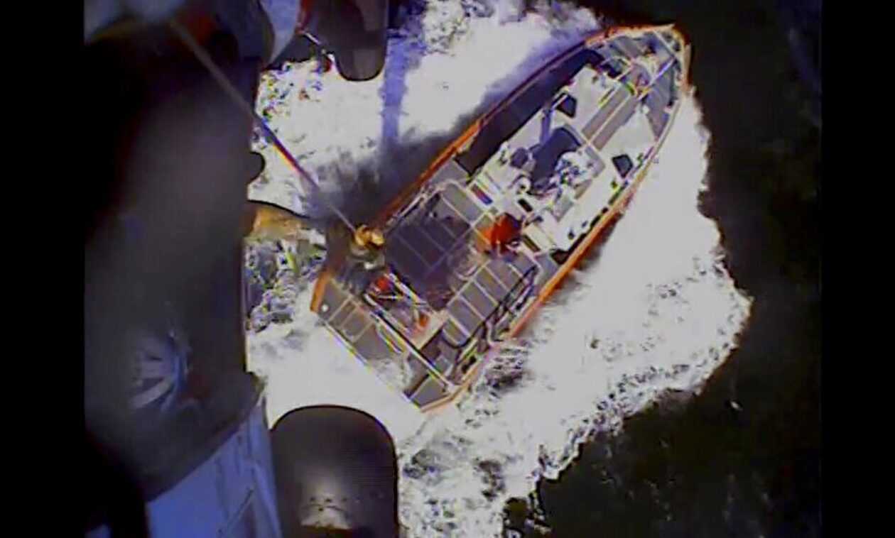 Αυτό ώθησε τα πληρώματα σκαφών και ελικοπτέρων της ακτοφυλακής να ψάξουν μια περιοχή περίπου στο ίδιο μέγεθος με το Ρόουντ Άιλαντ. Τελικά εντόπισαν τον Γκούγιεν περίπου 28 ώρες μετά τη βύθιση του σκάφους, είπε. Το δραματικό βίντεο και οι φωτογραφίες που καταγράφηκαν από το ελικόπτερο δείχνουν τους διασώστες να τραβούν δύο από τους άνδρες από το νερό σε μια βάρκα και στη συνέχεια να τους ανεβάζουν στο ελικόπτερο.